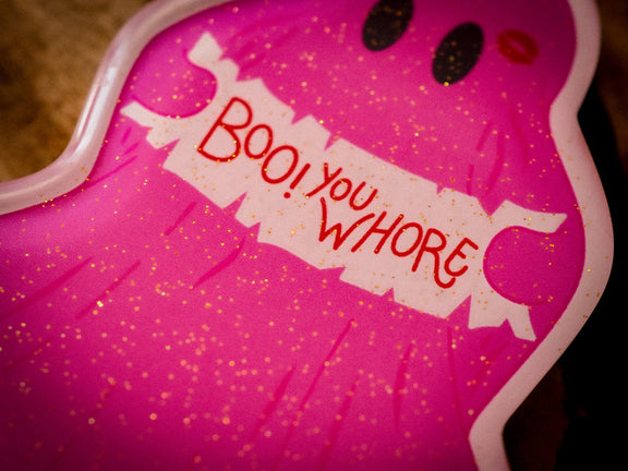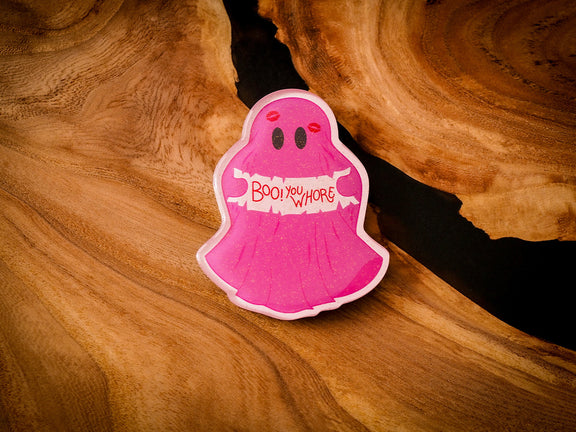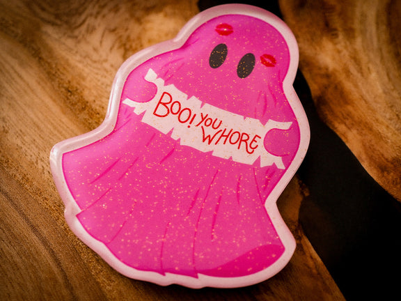 Another rude Ghostie, in all it's GLITTERY glory! It features tiny glitter and an epoxy finish on top. This magnet will be the perfect addition to your fridge.